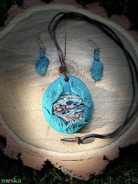 ékszer, ékszerszett, levél, gyurma, pávakagyló, spirituális