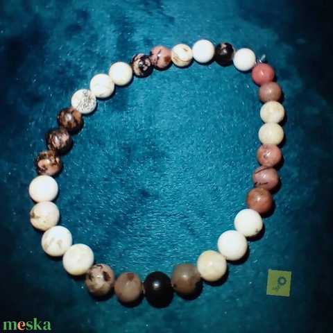 Ásványgyöngy karkötő gumis zsinórral - magnezit, rodonit gyöngyökkel