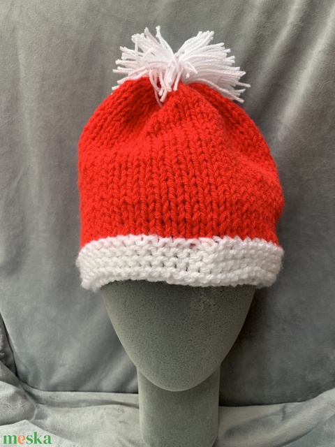 Sapka piros kézi készítésű gyerek sapka fehér pompommal eladó
