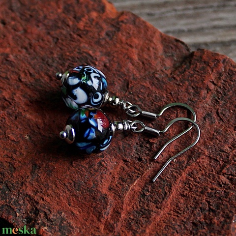 Murano - klasszikus mozaikos lámpagyöngy fülbevaló, MURÁNÓI ÜVEG ékszer