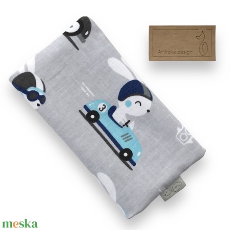 Versenyautós nyúl koma mintás pamut textilből készült papírzsebkendő tartó - SZÜLETÉSNAP - Artiroka design