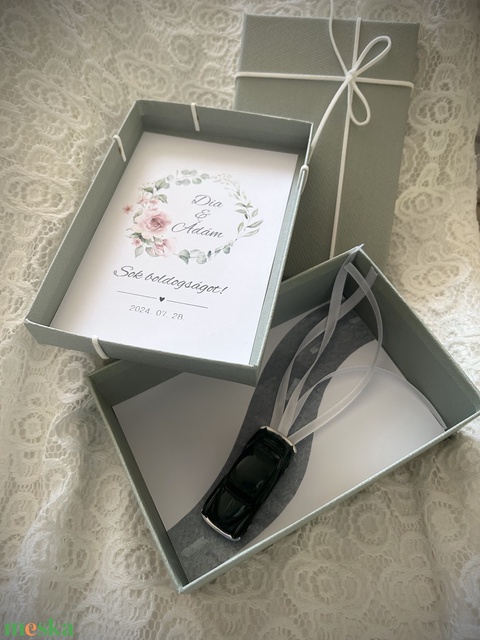 zöld autós Pénzátadó esküvő esküvőre nászajándék doboz dobozban pénz ajándék boríték helyett