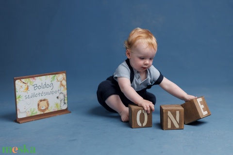 Robson finds kétoldalas szülinapos tábla készületen, fából, talpon áll