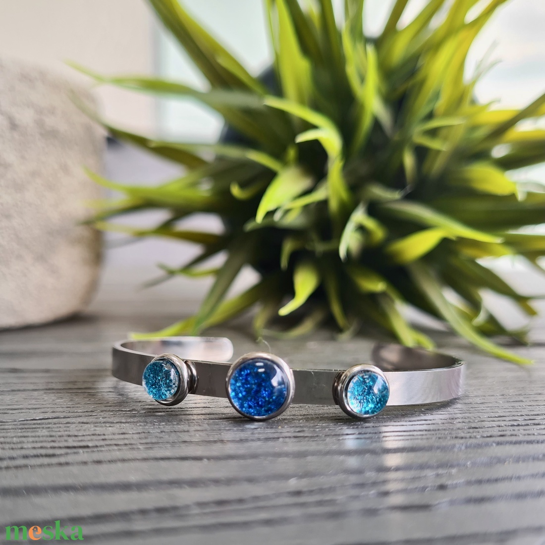 Csillogó türkiz - sötétkék - ezüst nemesacél karkötő