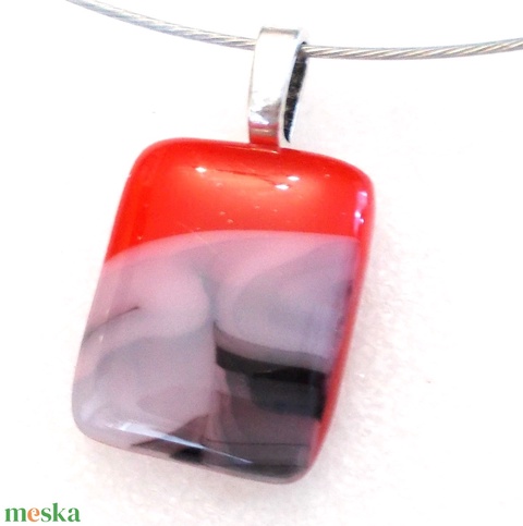 Fekete-fehér piros mintás nyaklánc, névnapra születésnapra.