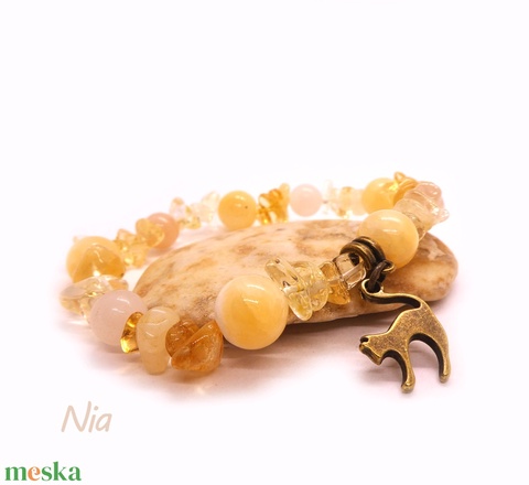 Napfürdő - ásványkarkötő cica medállal