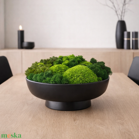 3D-s moha asztalközép nagyméretű - valódi mohadekoráció modern fekete tálban