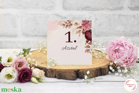 Asztalszám bordó virágokkal