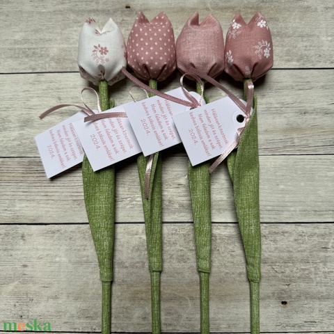 Textil tulipán bölcsis búcsúajándék /szett: 4 db/