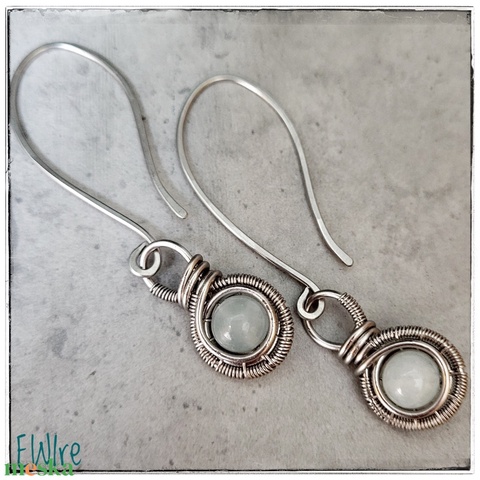 Akvamarin fülbevaló, ásványgyöngyös nagy hurkos orvosi fém fülbevaló