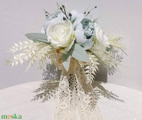 Rusztikus menyasszonyi csokor halvány kék, menta és krém színben -ajándékkal!