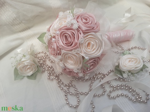selyemszalag , organza, gyöngy, csipke