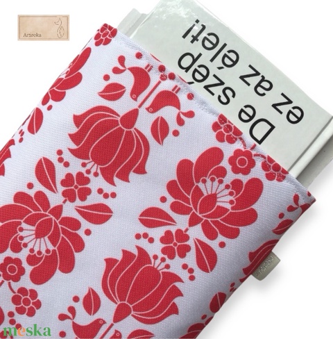 Könyvtok, népművészeti virágok mintával