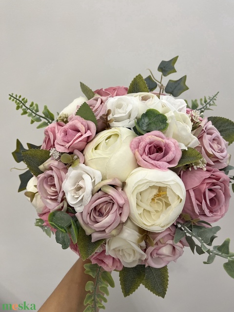 Rózsaszín rózsás menyasszonyi örökcsokor, menyasszonyi csokor