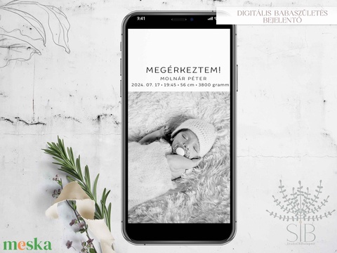Digitális, telefonon küldhető, modern babafotós megérkeztem, születési értesítő