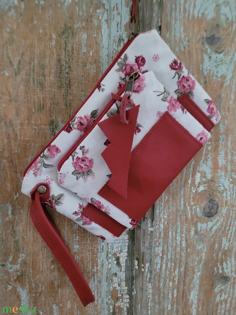 Pénztárca rózsás Vászon és bőr tárca Kártyatartó Csodás valódi  bőr talp feldobja és egyedivé teszi. A nagyobb alkalmas a papírpénz tárolására( Euro is) a kisebb praktikus az apró fémpénz tárolására, illetve kártyákat is tarthatsz benne.
