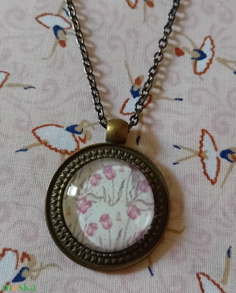 Rózsaszínű kis tulipánok üveglencsés nyaklánc