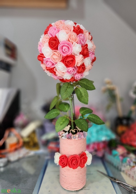 művirág, fonal, ragasztás, fa, szalag