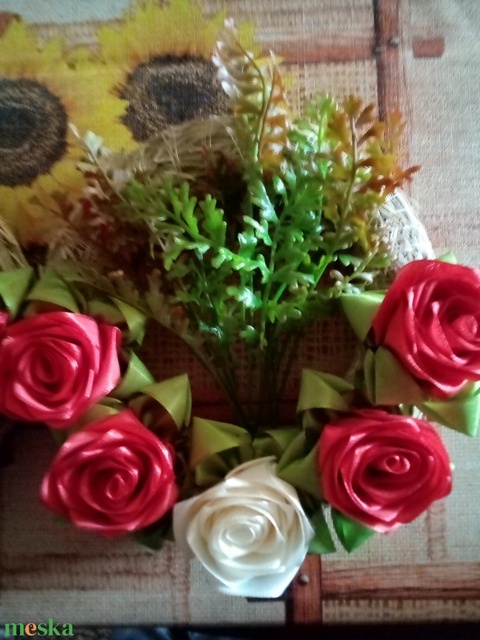 - Anyaga: szalma alap, szatén szalag