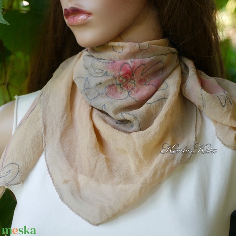 VINTAGE CHIFFON KENDŐ - exkluzív kézzel festett hernyóselyem muszlin kendő