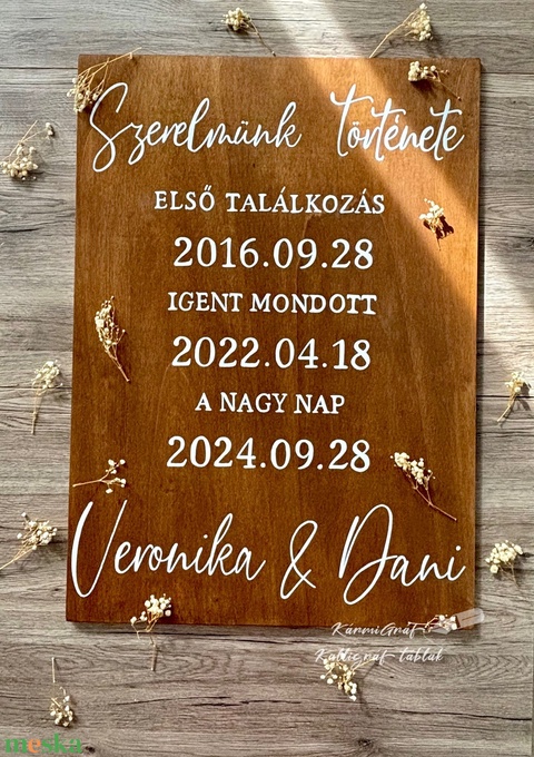 Esküvői szerelmünk története tábla