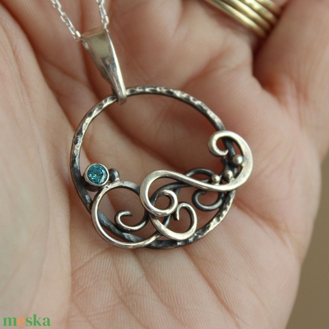 Hullám - ezüst medál kék cirkónia kővel ezüst nyaklánccal