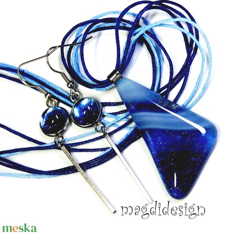 Kék csillámtenger üvegékszer szett nyaklánc lógós fülbevaló