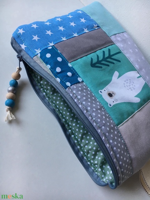 MIXED UP IN MINT/GREY. Patchwork (jeges)medvés sminkcucc-tartó/pipere