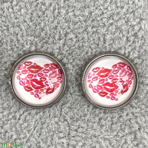 Színes Szív mintás üveglencsés nemesacél bedugós fülbevaló