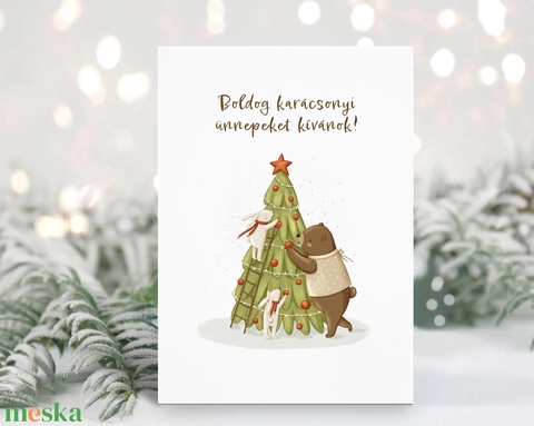Kedves erdei állatokkal illusztrált karácsonyi képeslapok, mely egyedi kézzel festett grafikával készültek, varázslatot csempészhetsz az ünnepi készülődés pillanataiba.