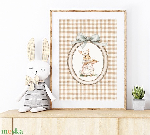 Nyuszi illusztrációs kép, vintage poszter, húsvéti falikép szett 3 db