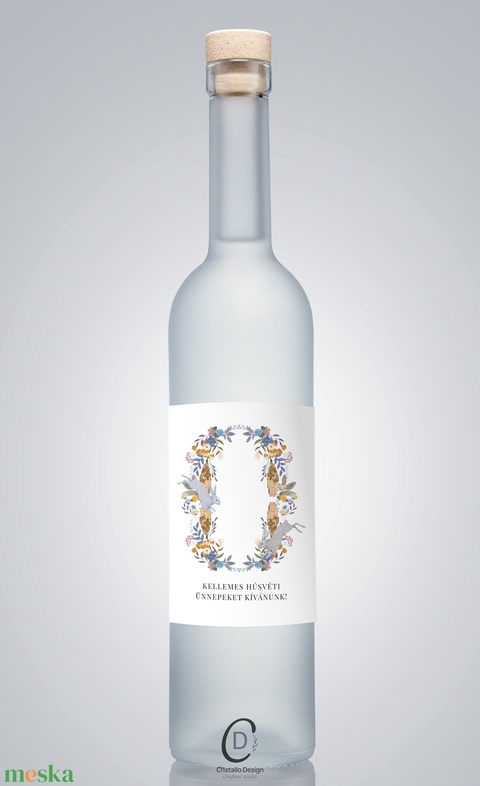 Húsvéti borospalack címke, pálinkás címke, nyuszis ajándékátadó, egyedi italos üveg matrica