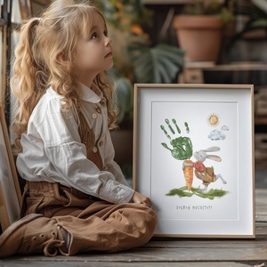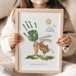 Húsvéti ajándék, egyedi kézlenyomatos poszter, farmos dekoráció