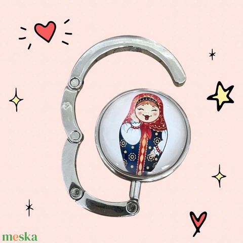 Matrjoska baba mintázatú Üveglencsés Táska Akasztó Táskaakasztó