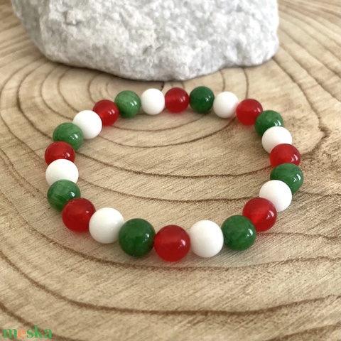 Magyar nemzeti színű ásvány karkötő szurkolói karkötő kokárda