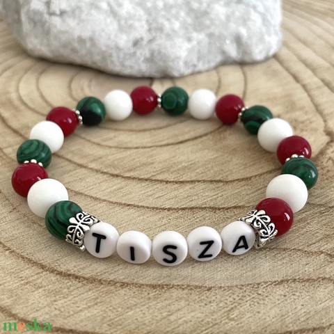 Magyar nemzeti színű ásvány karkötő TISZA felirattal