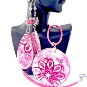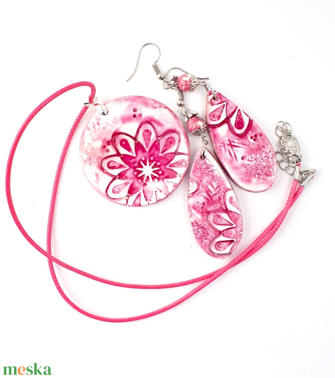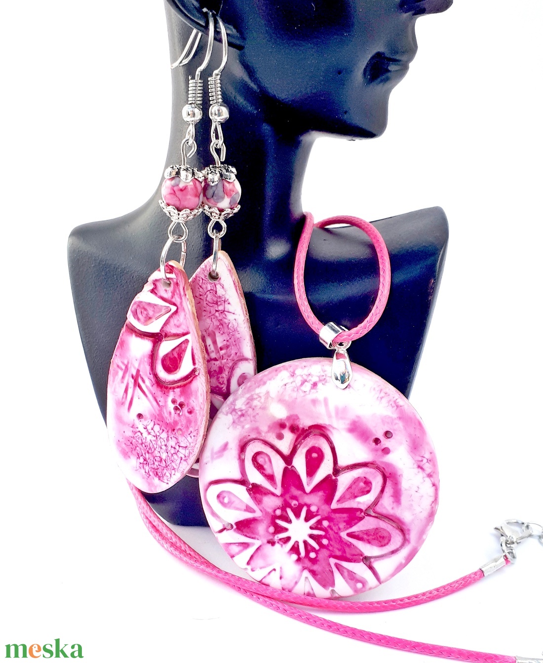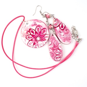 ékszergyurma, médiatinta, selyemfényű lakk, fém szerelék, zsinór, gyurma, süthető gyurma