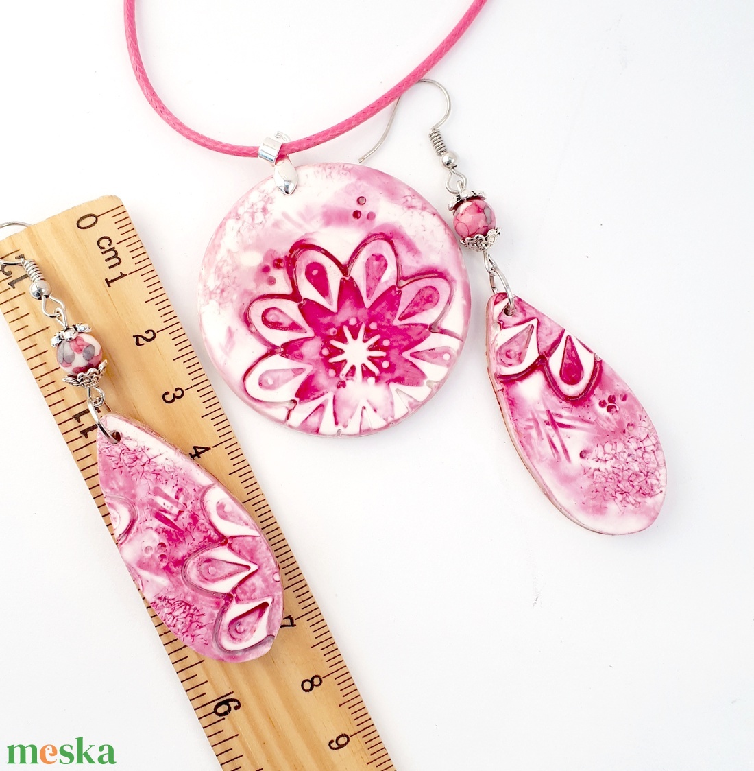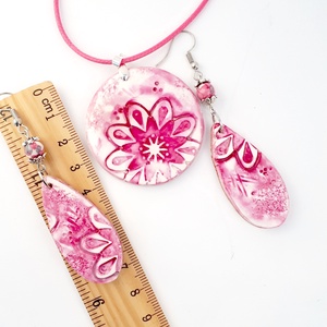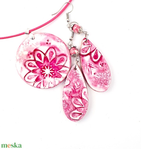- Anyaga: ékszergyurma, médiatinta, selyemfényű lakk, fém szerelék, zsinór, gyurma, süthető gyurma