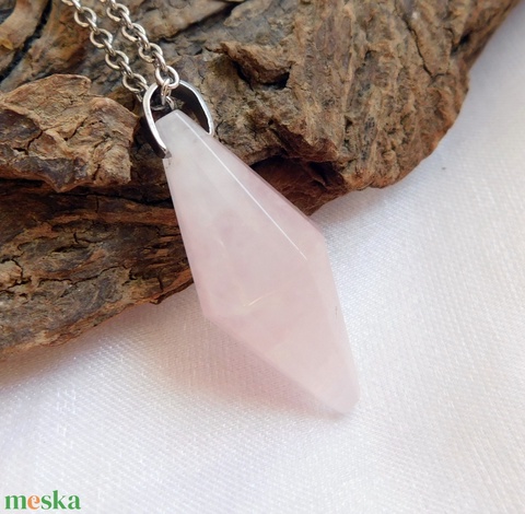 A Rózsakvarc az egyik legismertebb ásványaink közé tartozik, a 12 mesterkristály egyike. Ősidők óta használják leginkább a nők termékenységének fokozására, illetve a szívfájdalmak megszüntetésére. Szó szerint, régen szerelemvonzáshoz, kapcsolatok ápolásához használták és az egyik legjobb szív gyógyító. Gyengéddé teszi a nőket, de mégis igen határozottá. Ha viseljük, úgy érezzük nincs előttünk akadály, és bármire képesek vagyunk. Nyitottá tesz az új kapcsolatok iránt, illetve segít önmagunkat megismerni és növeli az önbizalmunkat, önértékelésünket. Segít, hogy elfogadjuk és szeressük önmagunkat, hisz addig, ameddig ez nem megy, igazán másokat se tudunk szeretni. Nyugtató hatású, azoknak ajánlom leginkább a használatát, akik gyakran kerülnek stresszes helyzetbe, emberek között dolgoznak, és nagy szükség van a türelemre, megértésre. Megtanít minket arra, hogy ne rágódjunk olyan dolgokon, amelyeket abban a pillanatban nem tudunk megoldani és fejezzük be az önmarcangolást. Felszabadítja az érzelemi blokkokat, bátorít, fejleszti az empátiát, nem csak viselője, hanem a környezete számára is. A szeretet köve, megszabadít mindenfajta szívfájdalomtól, csalódástól, ki nem mondott érzelmektől. Fizikailag méregteleníti a szervezetet, serkenti a keringést, erősíti a szívet, stabilizálja a vérnyomást és jótékonyan hat a vesék működésére. Használat után, mindig meg kell tisztítani.