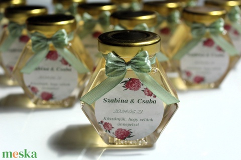 Pünközsdi rózsás esküvői mézes köszönet ajándék