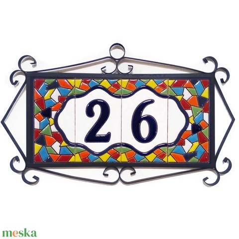 Személyre szabott, rendelésre készülő spanyol kerámia házszám fémkeretben - Mallorca, 2 számjegy - otthon & életmód - ház & kert - házszám - Meska.hu