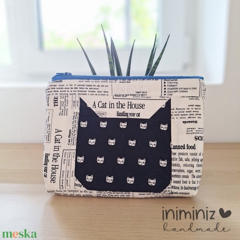 Patchwork neszesszer, cipzáros tok, tartó - Fekete-fehér cicás