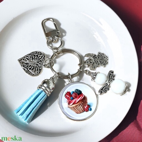 Dolce Vita "Édes Élet" Muffin üveglencsés kulcstartó táskadísz ásvány angyal medállal