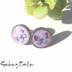 Lila kicsi szív bedugós fülbevaló.