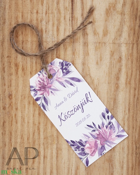 Esküvői köszönőkártya - virágos köszönőkártya - kísérőkártya - köszönöm- ajándékkártya - ajándékkísérő - lila - esküvő