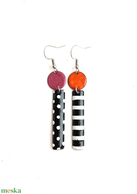 Dorothy - asszimetrikus tűzzománc fülbevaló - pöttyös/csíkos - lila- narancs