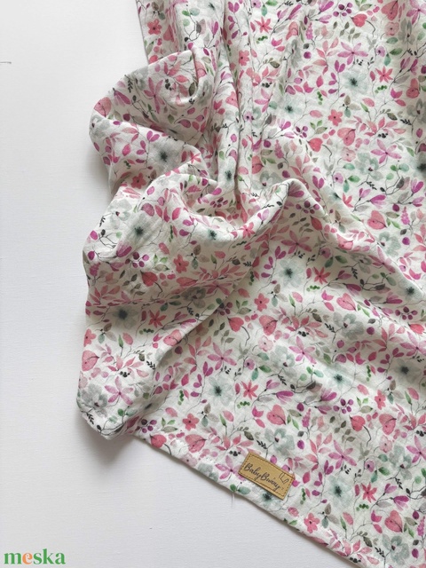 Duplagéz baba takaró - rózsaszín virágos