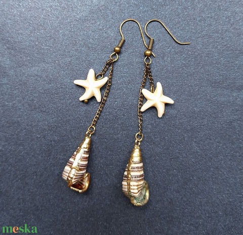 fülbevaló akasztó, tengeri csigák, ásványgyöngyök