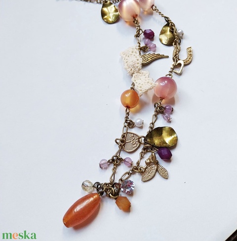 - Anyaga: szerelőpálca, akrilgyöngyök, organza szalag, csipke, ékszerlánc