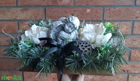Sírdísz-Műfenyős angyallal díszített